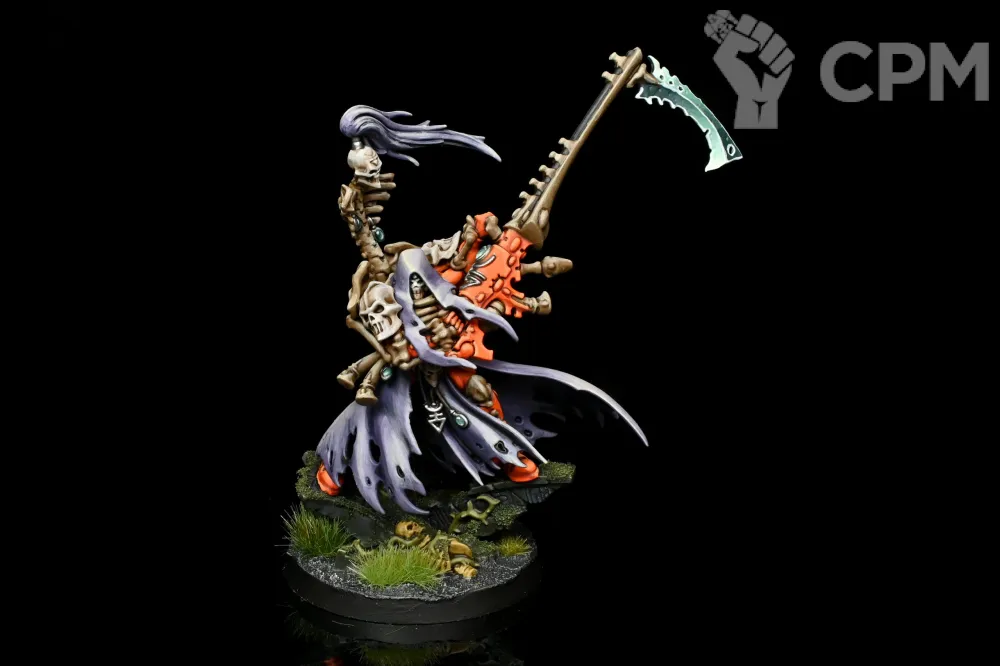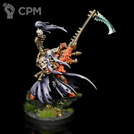 "ВААГХ! Если где-то на поле боя раздаётся зловещий шепот и звяканье косы – знай, это не Смерть пришла, это Мауган Ра опять забыл смазать свои шарниры! Представьте: трёхметровый позолоченный пугало в плаще из эльфийских штор, с косой размером с небольшой грокхолдер, важно вышагивает по полю боя, будто грок, впервые примеривший ходули. Его "смертоносная аура" – это на самом деле запах ладана, которым он щедро поливается, чтобы скрыть аромат поражений."