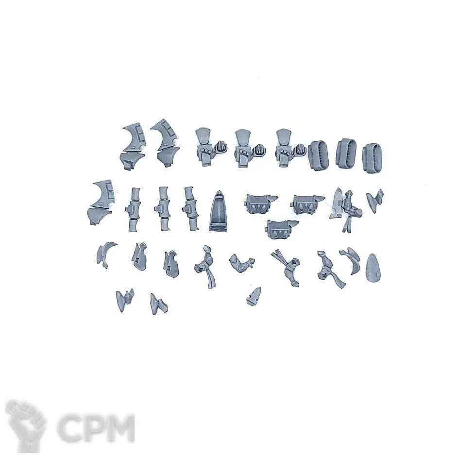 Собакен пришел. На качество литья не буду жаловаться - смола и крупные детали дружат никак. Но недостающие детали - это нехорошо. Точно нет запалов на втором инферно кэнон, нет второй крышки плеча над сервитором, нет одного места крепления силового кабеля к орудию и вызывает подозрения одиночная деталь чьё назначение я пока не нашел.