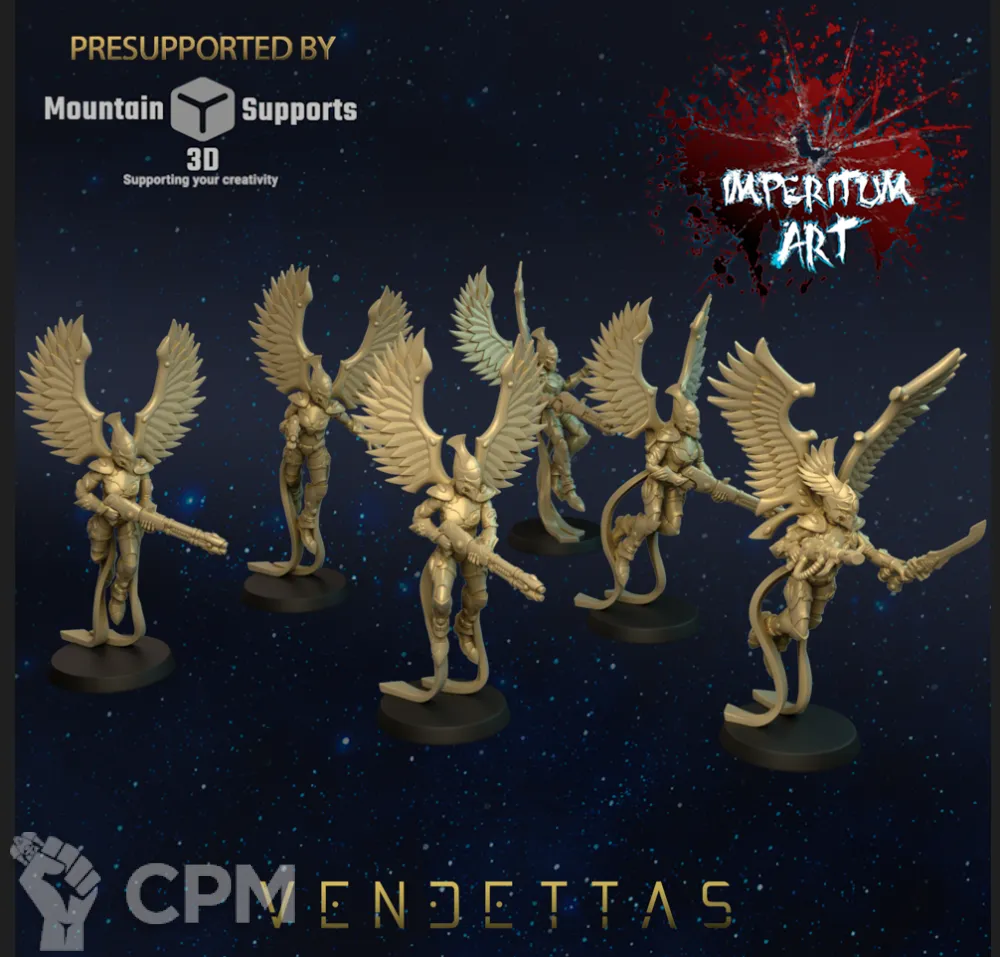 Очень классная печать. Брал альтернативу warp spiders, dark reaper и mandrakes, все очень крутые. Также брал эльдарскую варсир от артели, мне кажется у неё масштаб меньше игрового.