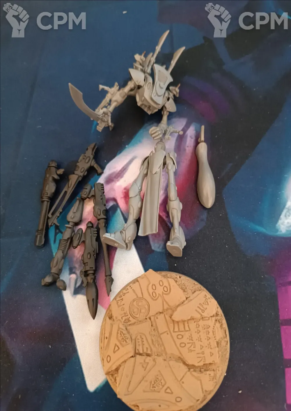 База задута в цвет, оружие в грунте, есть штифт для смены пушек. Модель подготовлена к грунту