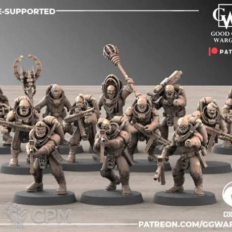 Очень долгий срок подготовки заказа, неторопливая отправка с присвоением трека за несколько недель до фактической отправки. Зачистка моделей и баз после печати проведена небрежно. Масштаб не соответствует масштабу GW для использования в качестве прокси моделей.