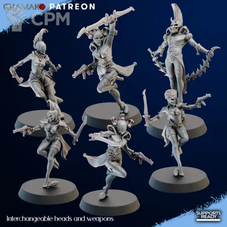 Здравствуйте, всего миниатюр 10? На картинке всего 6. Остальные выглядят так же и имеют тоже вооружение? Имеется ли другое вооружение (Fusion pistol и Neuro disruptor) из оригинального Harlequin Troupe?