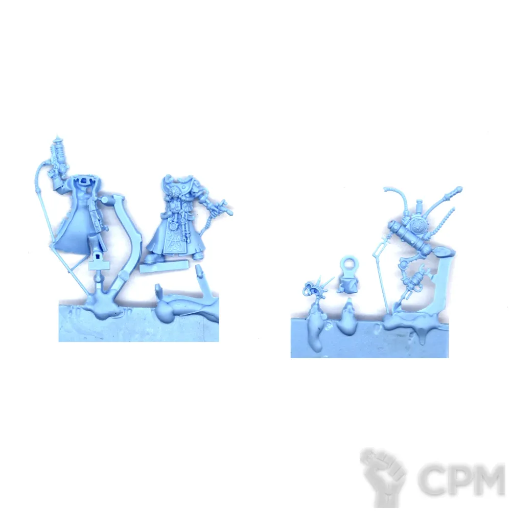 Литье неплохое: детализация на высоком уровне, однако пластик очень хрупкий (несколько деталей оказалось отломано, скорее всего в процессе упаковки, а не доставки). Единственный брак литья: у Daedalosus (AdMech) отсутствовал один маленький кабель. Дефект литья или формы не знаю, но не страшно, т к зеленкой в любом случае работать пришлось, щелей достаточно. Упаковано для отправки было отлично: в картонную коробку с газетами. Общая оценка 4 (недостатки литья, плюс долго ждал отправки).