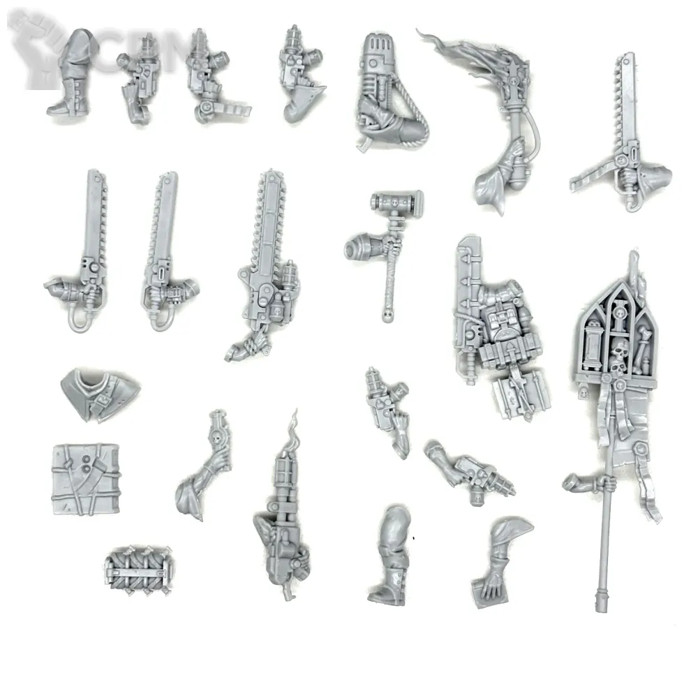 Собакен пришел. На качество литья не буду жаловаться - смола и крупные детали дружат никак. Но недостающие детали - это нехорошо. Точно нет запалов на втором инферно кэнон, нет второй крышки плеча над сервитором, нет одного места крепления силового кабеля к орудию и вызывает подозрения одиночная деталь чьё назначение я пока не нашел.