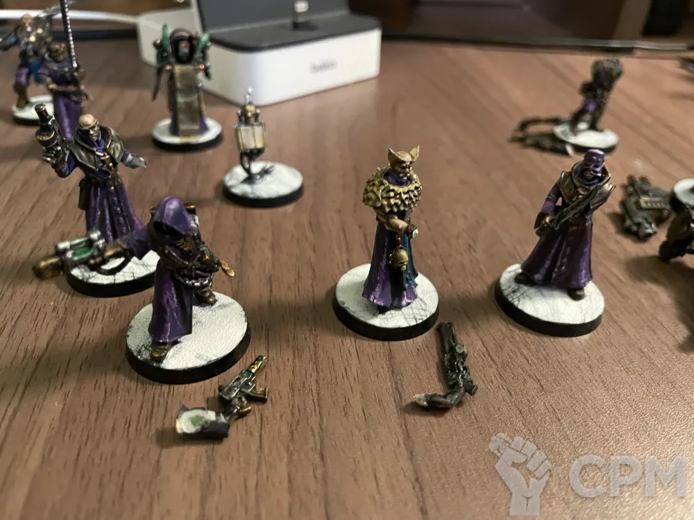 Инквизиция - литье. Почти все на месте, но лень клеить. Не хватает головы у огнметчика, руки у одного из хеви и руки у ножевика. То есть у всех моделей, которые не берут в спортивной игре, так что ростер играбельный сразу.