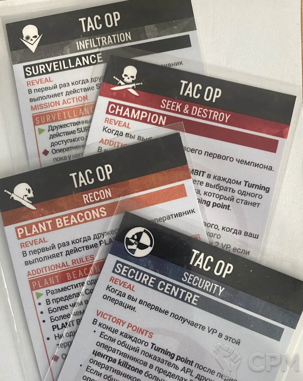 По 3 карты TAC OP: Infiltration, seek&destroy, security, recon.
