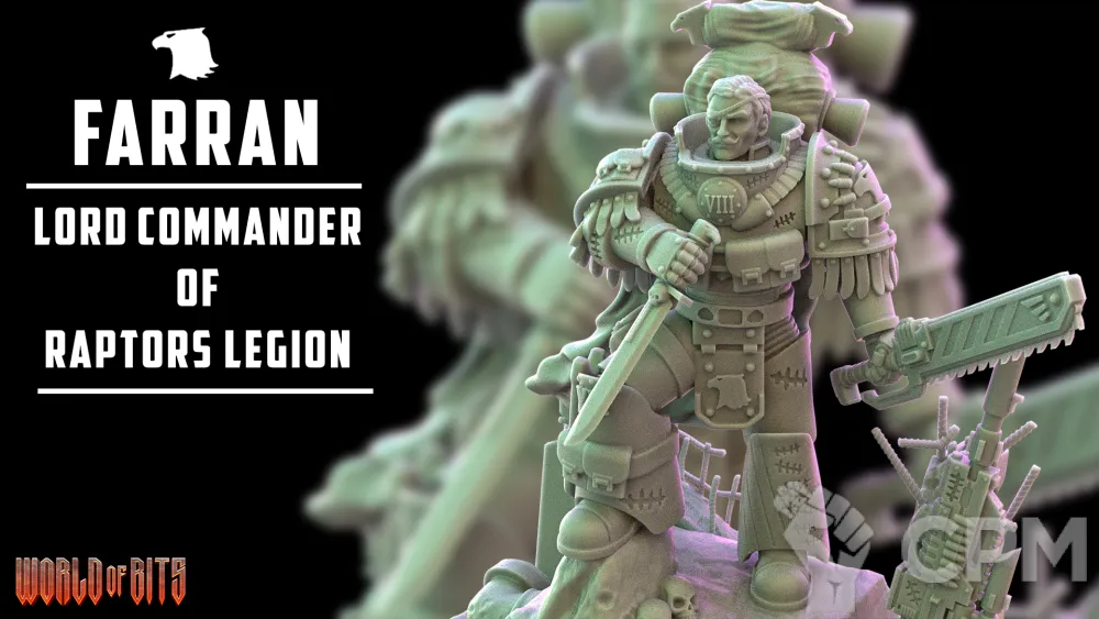 Фарран – Лорд-командующий VIII легиона космических десантников, известный как Циклоп или Смерть издалека, был известен своей необычной речью и скромным поведением. Его умение выразительно говорить и использовать рассказы, звучащие излишне украшено и элегантно, оставалось с ним, хотя он был скромен по натуре. Ранее он был обнаружен в густом заросшем лесу мира Блайтон, который был полем битвы между ополченцами и противниками, и сумел сыграть важную роль в преодолении разрыва между солдатами планеты и правящим классом. Он отправился в густонаселенную столицу, где занимался ремесленными делами и изучал более высокие формы искусства, перед тем как покинуть свой родной город и отправиться в трущобы и зоны боевых действий, пережив множество испытаний и достигнув непревзойденных высот в снайперстве. В ходе своего путешествия Фарран обнаружил радиомачту, которую построили ремесленники знати, и смог заметить ужасы, скрывавшиеся за ее пределами, крики и завывания о помощи, что подтолкнуло его к д