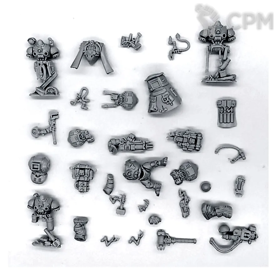 Собакен пришел. На качество литья не буду жаловаться - смола и крупные детали дружат никак. Но недостающие детали - это нехорошо. Точно нет запалов на втором инферно кэнон, нет второй крышки плеча над сервитором, нет одного места крепления силового кабеля к орудию и вызывает подозрения одиночная деталь чьё назначение я пока не нашел.