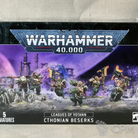 В данном наборе содержатся 117 компонентов, необходимых для сборки пяти Хтонианских Берсерков – аугментированных воителей с огромным двуручным оружием.