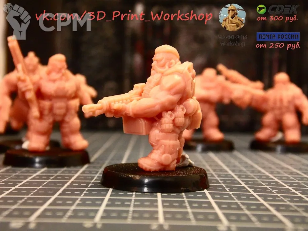 Ребята, очень качественно команда пасюков напечатана, почищена. По очистке от поддержек минимальные работы. Детализация выше всяческих похвал. Из пожеланий на перспективу - не экономьте на зип-пакетиках, раскладывайте миньки в количестве 3-4 максимум на пакетик. Так, как показывает практика, меньше будет досадного микро-лома при транспортировке. Вообще, очень доволен заказом, благодарю мастерскую, буду заказывать ещё!