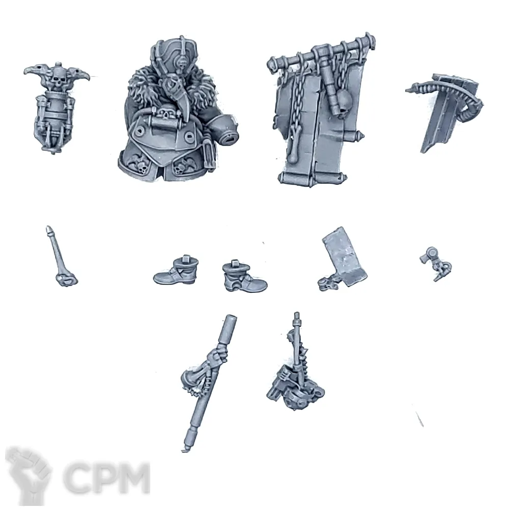 Собакен пришел. На качество литья не буду жаловаться - смола и крупные детали дружат никак. Но недостающие детали - это нехорошо. Точно нет запалов на втором инферно кэнон, нет второй крышки плеча над сервитором, нет одного места крепления силового кабеля к орудию и вызывает подозрения одиночная деталь чьё назначение я пока не нашел.