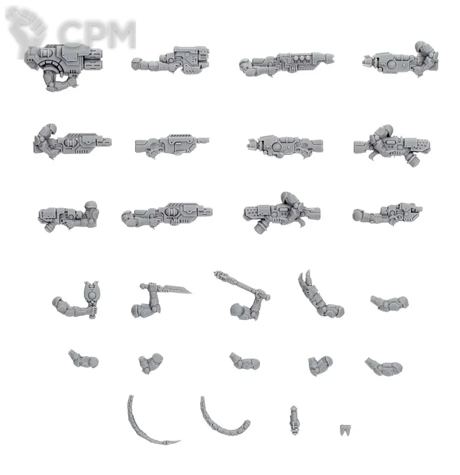 Хорошее качество и минимальные швы, убираемые одним движением наждачной бумаги порадовали. В качестве недостатка могу отметить разные изображения в наборе комби-мелт. Я ожидал комби-болтеры с руками, а на фото литья рук уже нет. Но это не стало большой проблемой.