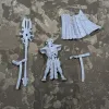 Не приехало пару деталей. Миниатюры как-будто ножом ковыряли особенно плащи, некоторые элементы кажутся мутными и слипшимися, мечи потрескавшиеся. Есть и детали хорошего качества но их к сожалению мало