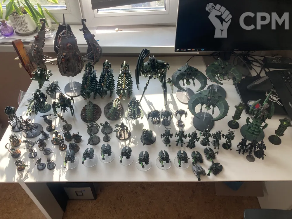 Армия Некрон, большая часть в отличном покрасе, есть и в игровухе/ Фото каждого юнита вывесить не могу, если что интересно - спрашивайте. Список, количество и материал - в последнем фото. Насчет трупсы - большая часть пластик, но было и литье, сейчас ковырять каждого ворриора лень, но перед продаже проверю, соответственно, скорректирую цену.