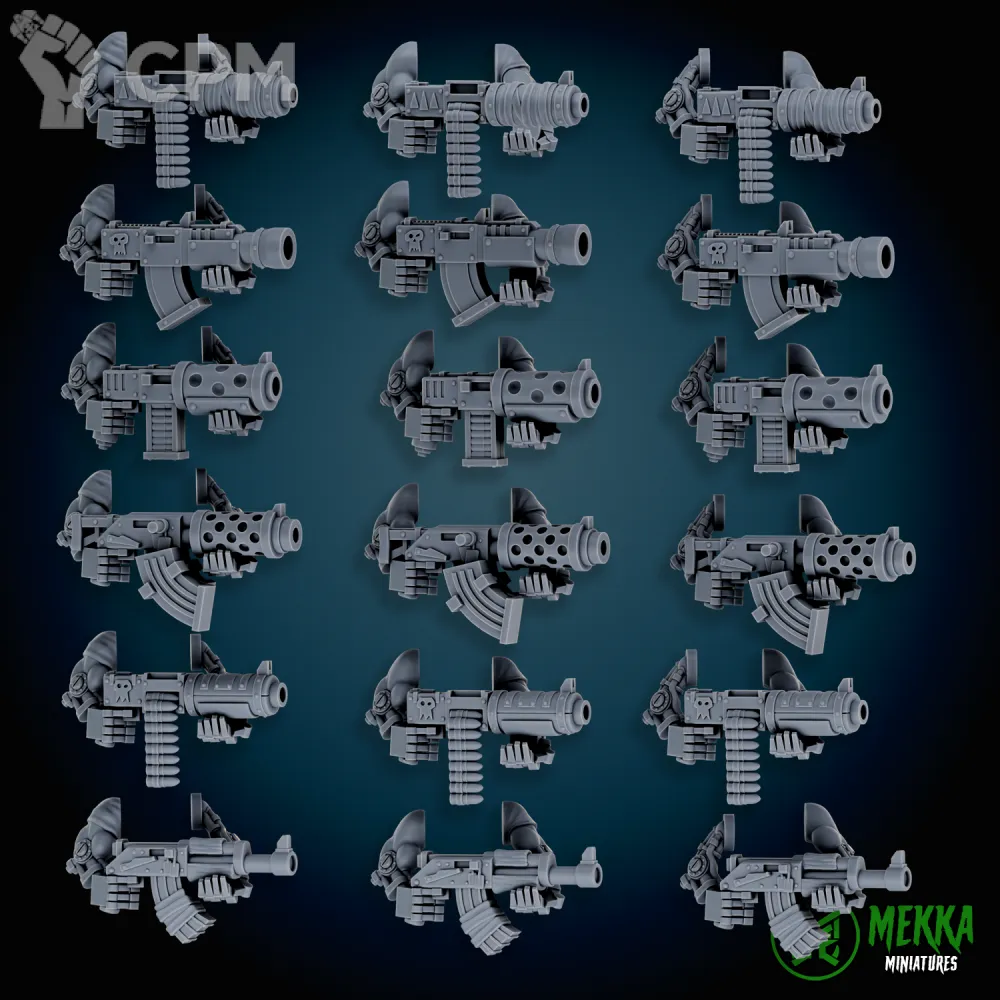 Приветствую. Больше фоточек Пейнбосса можно посмотреть тут у автора 3д модели https://vk.com/orcskrazy?w=wall-211161277_296. А вот для меганобов больше фоточек нет, кроме этой. Плюсом я добавил от себя доп битсов для сборки мека с кфф. Если будут какие то сложности - пишите, разберемся)