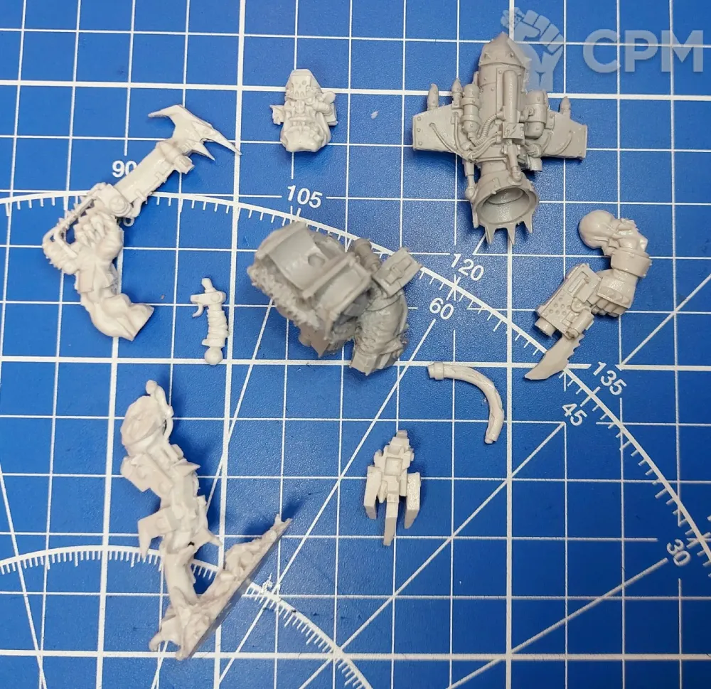 Детализация литья точно как в мастермоделях, без смещений и непролива. Материал прочный и плотный, светло-серый. Пластиковые подставки (визуально как оригинальные) - в комплекте, это замечательно)) Рекомендую)))