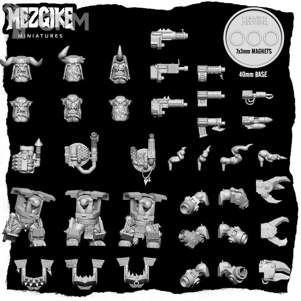 Приветствую. Больше фоточек Пейнбосса можно посмотреть тут у автора 3д модели https://vk.com/orcskrazy?w=wall-211161277_296. А вот для меганобов больше фоточек нет, кроме этой. Плюсом я добавил от себя доп битсов для сборки мека с кфф. Если будут какие то сложности - пишите, разберемся)
