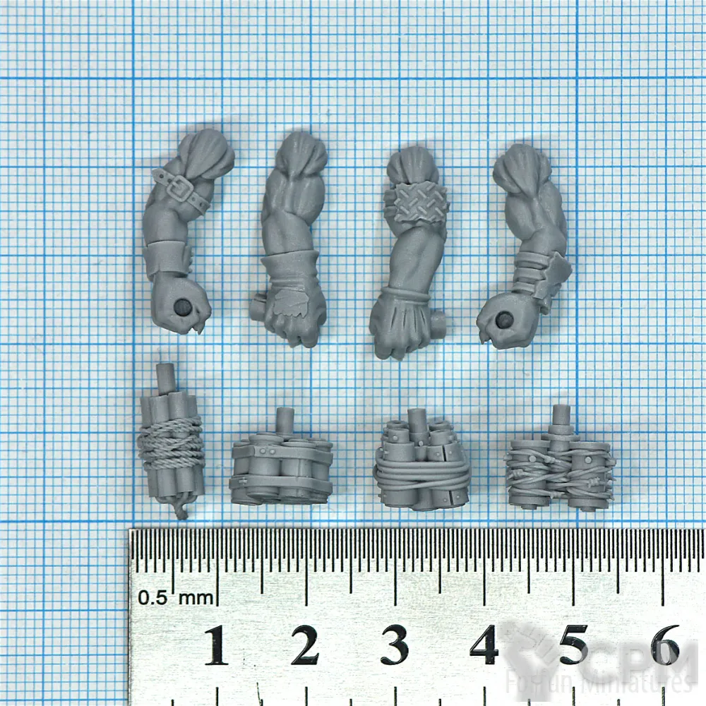 Набор из 4-х рук (2 левые, 2 правые) и 4-х гранат из литьевого пластика (="смолы").