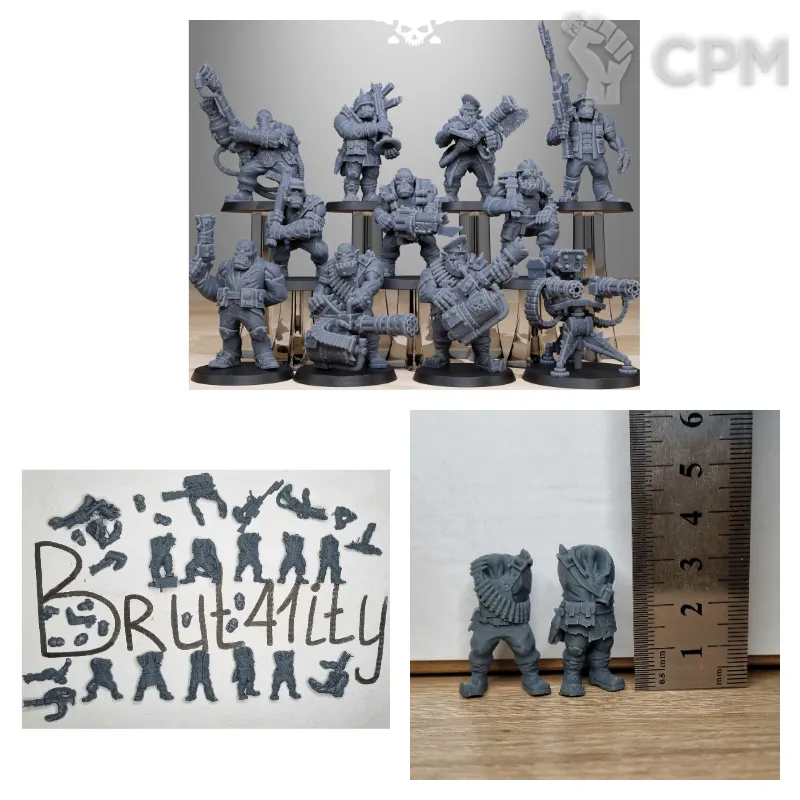 Выиграл на аукционе отряд касркин из 14 моделей. Качество печати отличное, со следами поддержек, как и было заявлено в описании аукциона. При отправлении упаковали как иглу Кощея: каждая модель в отдельном пакете, отдельный пакет в отдельной пупырке, отдельная пупырка в общей пупырке, общая пупырка в коробке (коробка в зайце, заяц в соколе и т.д.). Все пришло небитым, некрашеным. Будете покупать или выиграете на ауке, докупите сразу базы.