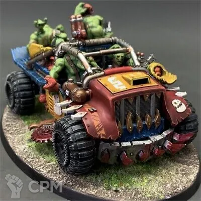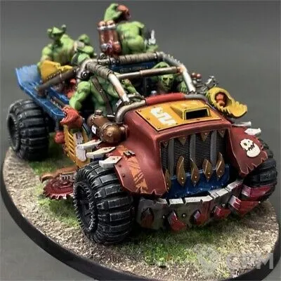 Руккатракк Сквигбагги! Это не просто транспорт — это симфония хаоса на колёсах, где дикая ярость сквигов сливается с гением оркской инженерии в огненном вихре разрушения! Когда он выезжает на поле боя, сама земля пускается в пляс под его безумный ритм, а враги замирают в немом восхищении перед этим шедевром безумия. Его корпус — не просто металл, а священный саркофаг для бьющейся в экстазе жизни, где каждый шип, каждый оскал, каждый дымящийся выхлоп кричит о мощи, что пышет из каждой заклёпки! Это не машина — это движущийся праздник, где сквиги не пассажиры, а почётные дирижёры оркестра адского огня.