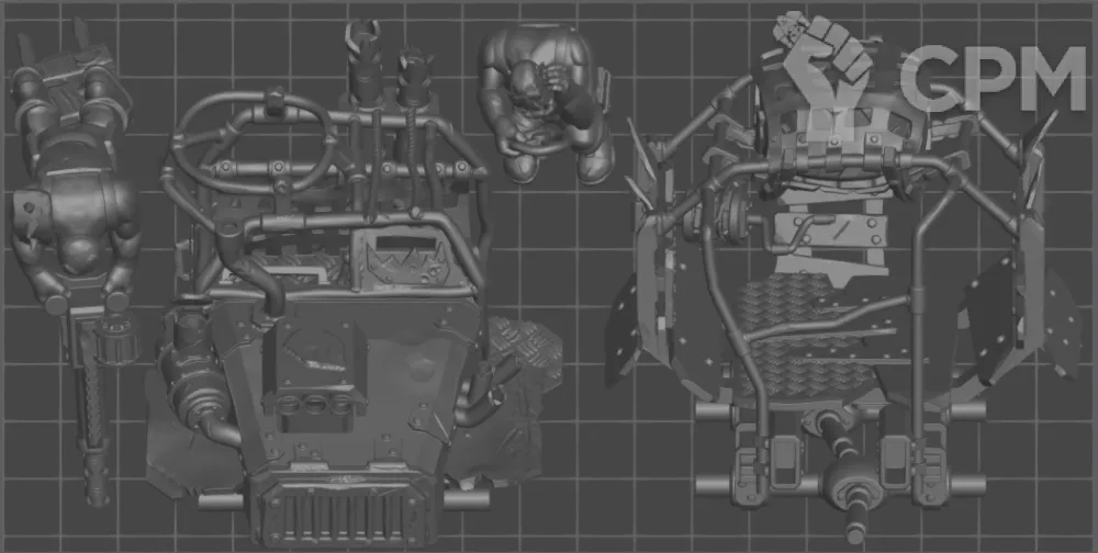Trukk — это не просто транспорт, а квинтэссенция оркской механики, где каждый болт, каждая вмятина и каждый дымящийся провод кричат одно: "Я не должен работать... но посмотрите, как я это делаю!" Когда этот король дорог (и бездорожья) выезжает на поле боя, даже самые крутые танки скромно отползают в сторонку — ведь они знают: настоящая мощь измеряется не броней или пушками, а количеством орков, которых можно впихнуть в кузов, пока колёса не отвалятся.