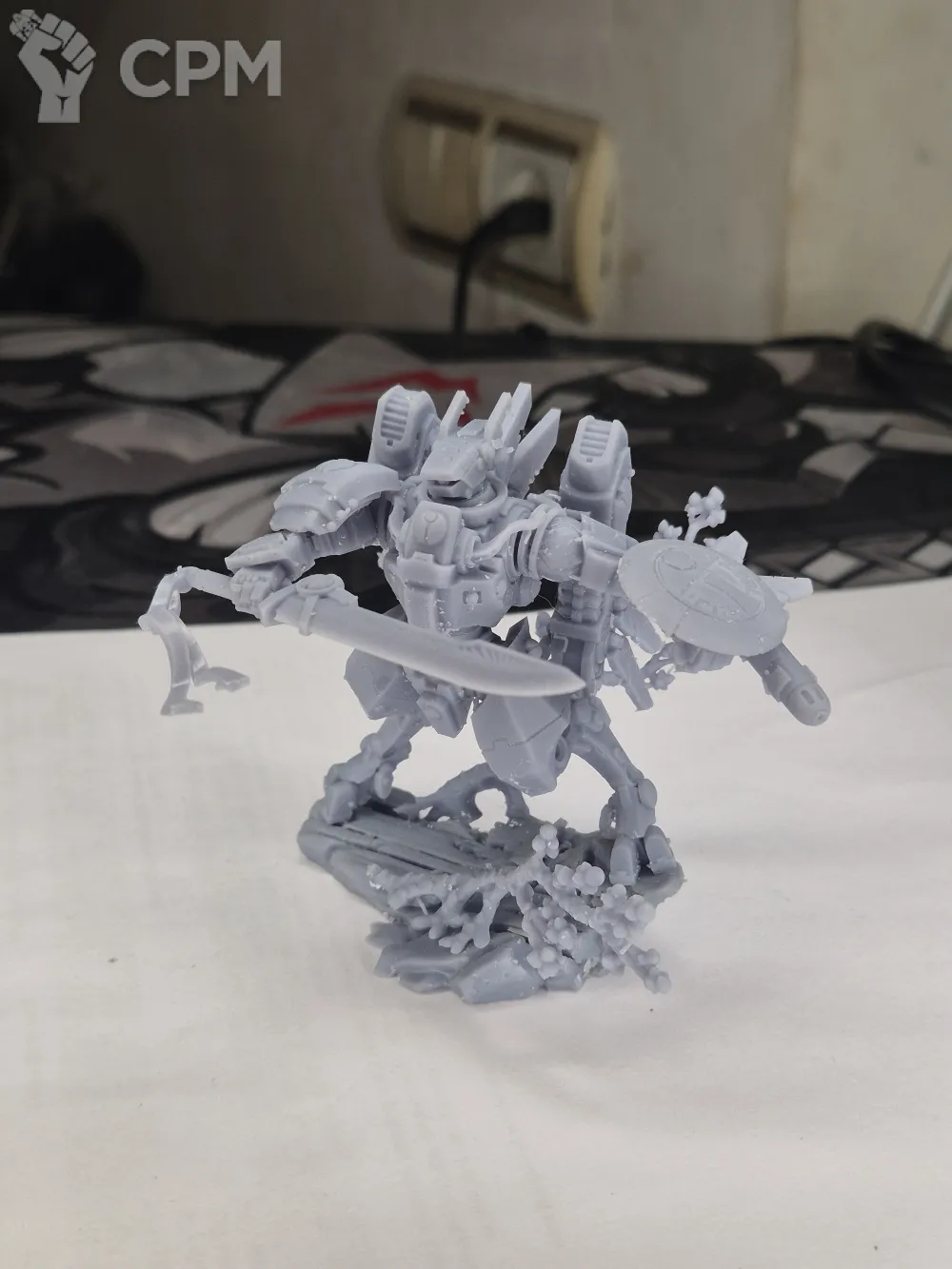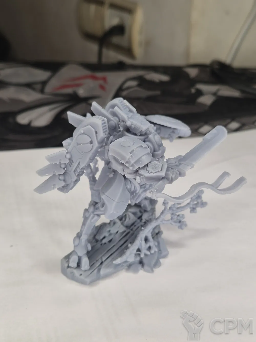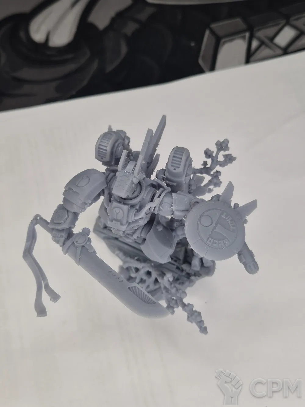 Модель поставляется в разборе, без подставки (база 60мм: https://minifreemarket.com/catalog/games-with-miniatures/accessories/bases/baza-60mm-67325)