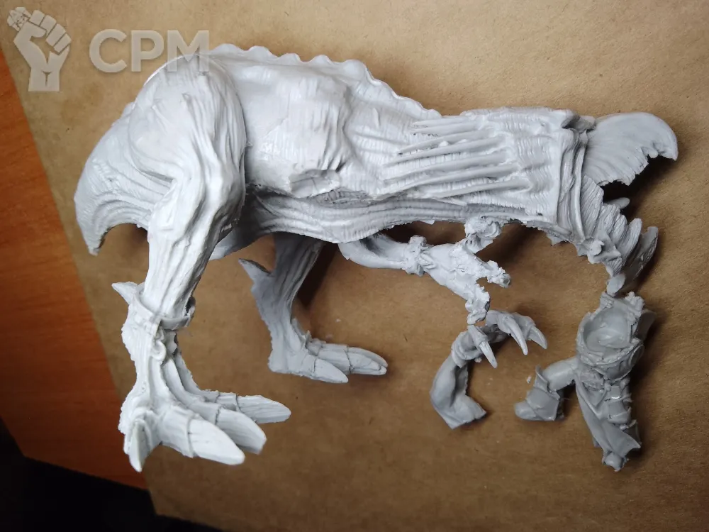 Заказывал великого зверя горгорота. Сам горгоротский зверь выполнен хорошо - из недостатков швы и различные мелкие проблемы в углублениях. Касательно орков: традиционное для литья (а тут и вовсе литьё с фейлкаста) гнутое оружие, один из луков обломан (скорее всего при транспортировке), командирское длинное копьё же собрало настоящее комбо из проблем - тут и погнутость, и швы, и куски смолы, и сколы, благо всё это решается очень просто - заменой древка на проволоку; у одного из орков некоторые проблемы с лицом - облой соединяет крайне тонкие детали глаза и носа, что будет проблематично исправлять, в остальном же значимых нареканий нет. С доставкой и упаковкой проблем нет (хотя наверное стоило проложить орков дополнительным кусочком пупырки). По итогу можно сказать, что литьё вполне нормальное - многие недостатки следствие (судя по всему) проблем оригинальных моделей - каждый, кто не раз работал с файнкастом от гв, знаком с этим, качество же работы изготовителя вцелом примерно на уровне с другими отечественными производителями, работающими с лотром, так что покупать здесь пожалуй продолжу, ну и остальным могу также советовать, хотя и с оговоркой - стоит быть готовым к вышеназванным недостаткам.