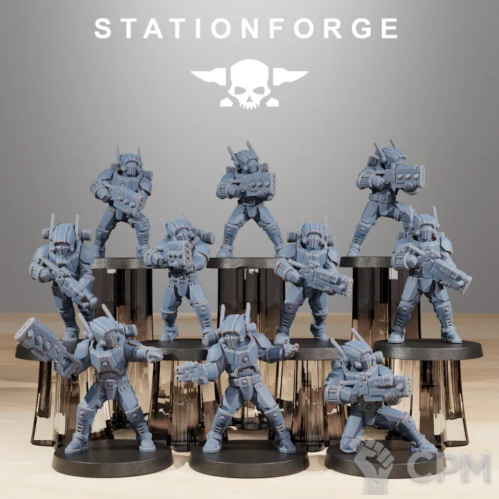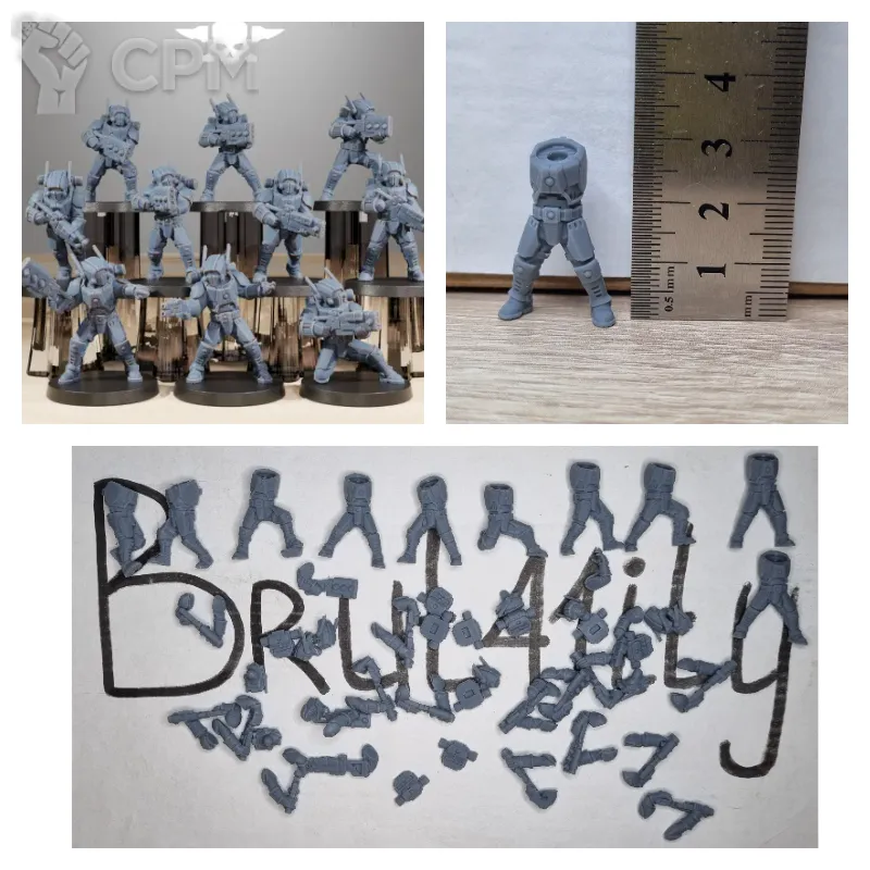 Выиграл на аукционе отряд касркин из 14 моделей. Качество печати отличное, со следами поддержек, как и было заявлено в описании аукциона. При отправлении упаковали как иглу Кощея: каждая модель в отдельном пакете, отдельный пакет в отдельной пупырке, отдельная пупырка в общей пупырке, общая пупырка в коробке (коробка в зайце, заяц в соколе и т.д.). Все пришло небитым, некрашеным. Будете покупать или выиграете на ауке, докупите сразу базы.