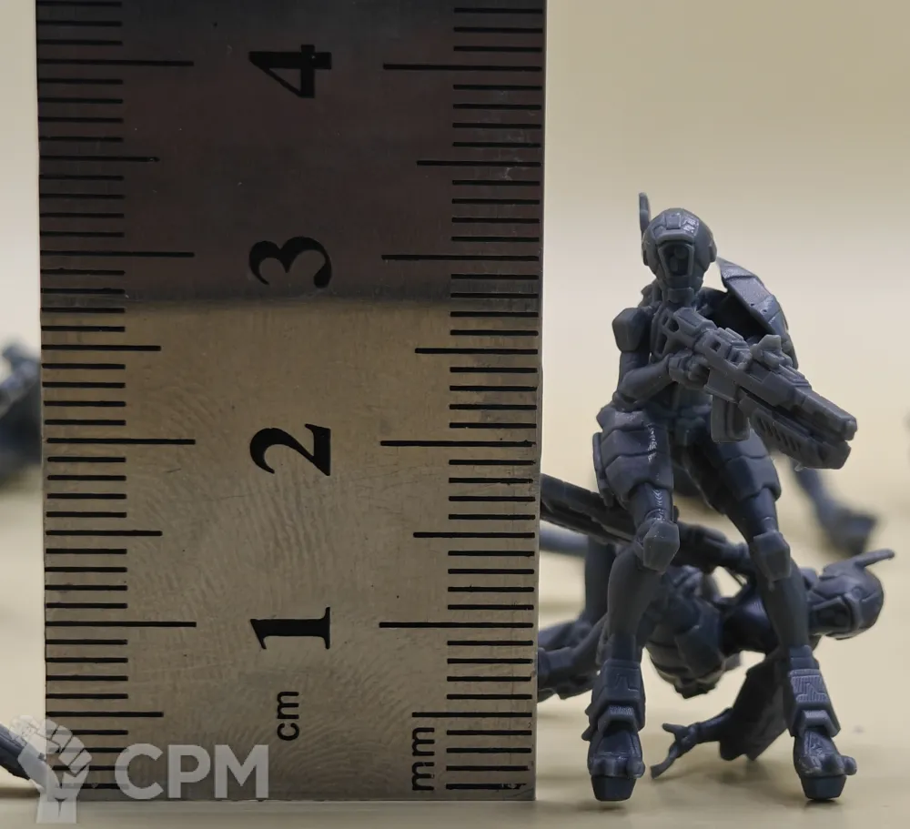 Миниатюры отмыты от смолы, отделены от поддержек, дозасвечены Миниатюры не окрашены. Миниатюры поставляются в разобранном виде, неокрашенные, детали склеиваются супер клеем, возможна необходимость небольшой обработки