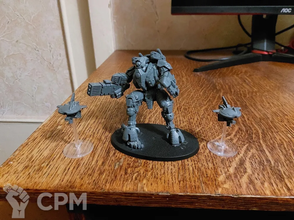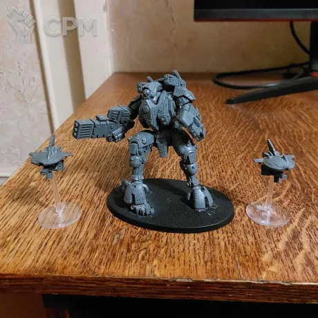Оригинальный тяжелый стелс БСК Империи Тау с дронами. В данной позе он был собран не мной. Есть детали для другой закачки. Приложу в дополнение к заказу.