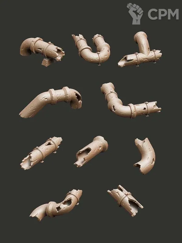 Набор печатных поломанных труб, состоящий из 10 штук.