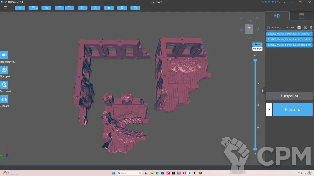 - Печать миниатюр производиться на 3Д принтере 12к четкости, толщиной - 3 микрона (лесенка почти не видна)