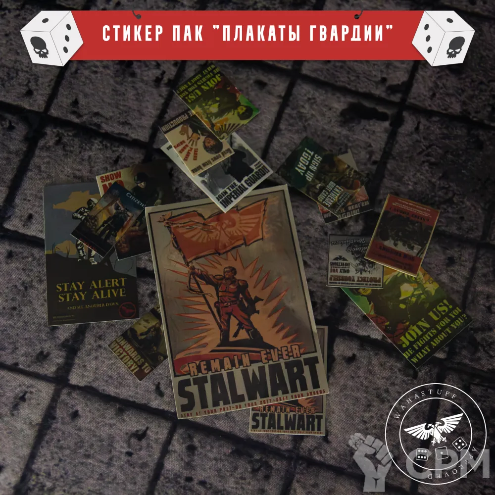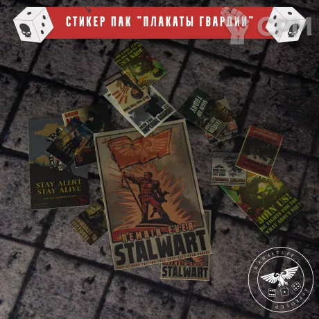 Стикерпак сделан под стиль агитационных плакатов Имперской гвардии, чтобы придать атмосферу вашим городским боям и вашим руин. Стикеры выступят красивыми деталями для вашей фотосессии с миниатюрами.