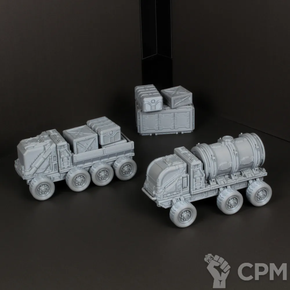 Террейн представляет собой набор состоящий из 2-х моделей грузовой техники и набора груза для них.