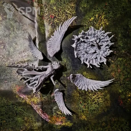 Модель демон принца легиона Тысячи сынов. Такой мини Магнус . Высота модели от конца хвоста до кончика рогов - чуть выше 8 см. Максимальная высота с крыльями около 12,5 см. В комплекте фигурная база - 60мм. Модели изготовлены при помощи фотополимерного 3д принтера elegoo saturn 4 ultra (качество печати - 12k)