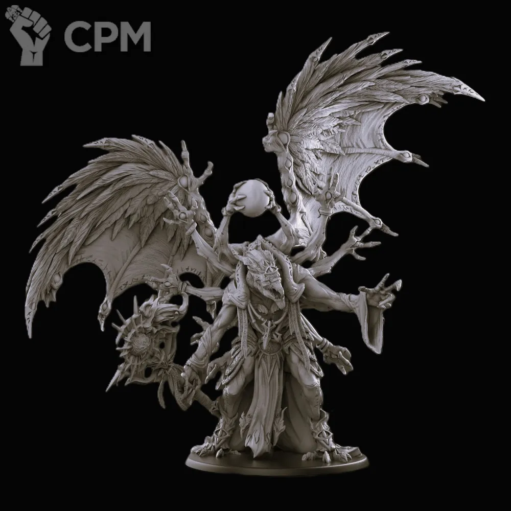 Модель демон принца легиона Тысячи сынов. Высота модели от стоп до макушки около 8 см. Максимальная высота модели около 13,5 см. Модели изготовлены при помощи фотополимерного 3д принтера elegoo saturn 4 ultra (качество печати - 12k).