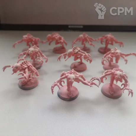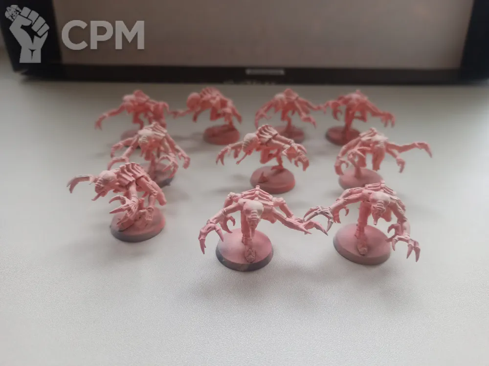 Genestealers в грунте. Быстрые и смертоносные существа, когти которых способны вскрывать терминаторскую броню, а молниеносные рефлексы позволяют расправляться с противником в мгновении ока. Грунтованных моделей в наличии 25 штук, цена указана за 10 штук.