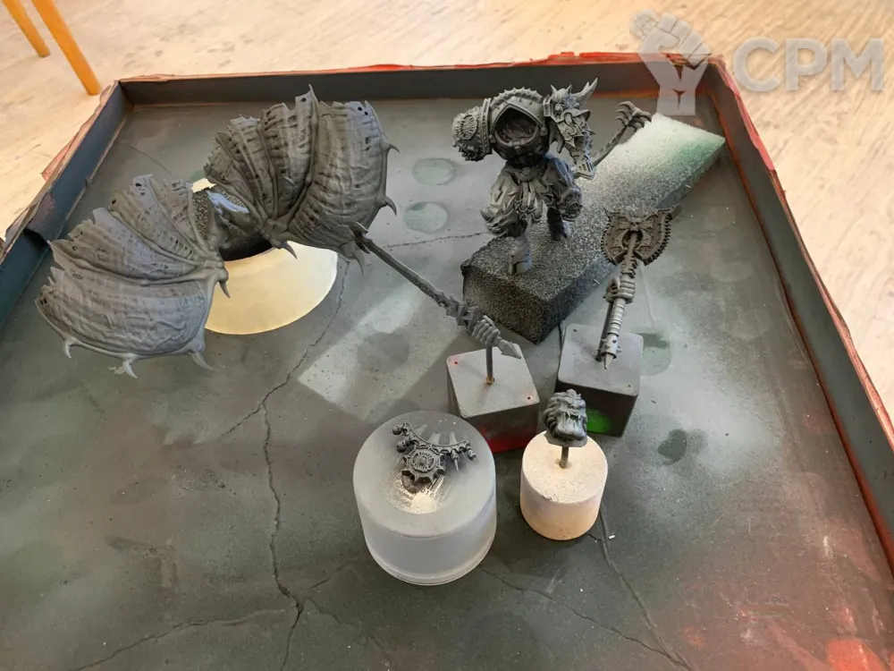 Фотополимерная печать (миньки и топперы) выполняется с разрешением 12к из ударопрочной ABS смолы.