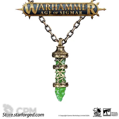 Колье из Варп камня, Да-да! , также известный как "колдовской камень", "камень провидца", "черный камень", "камень скверны", "ведьмин камень", "божественный камень" среди скавенов и Абн-и-хат, "Горящий камень" - на языке древней неехары, это яркая, изумрудно-зеленая кристаллическая субстанция, которая на самом деле является затвердевшей формой чистой энергии Хаоса, сконденсированной непосредственно из Эфира.