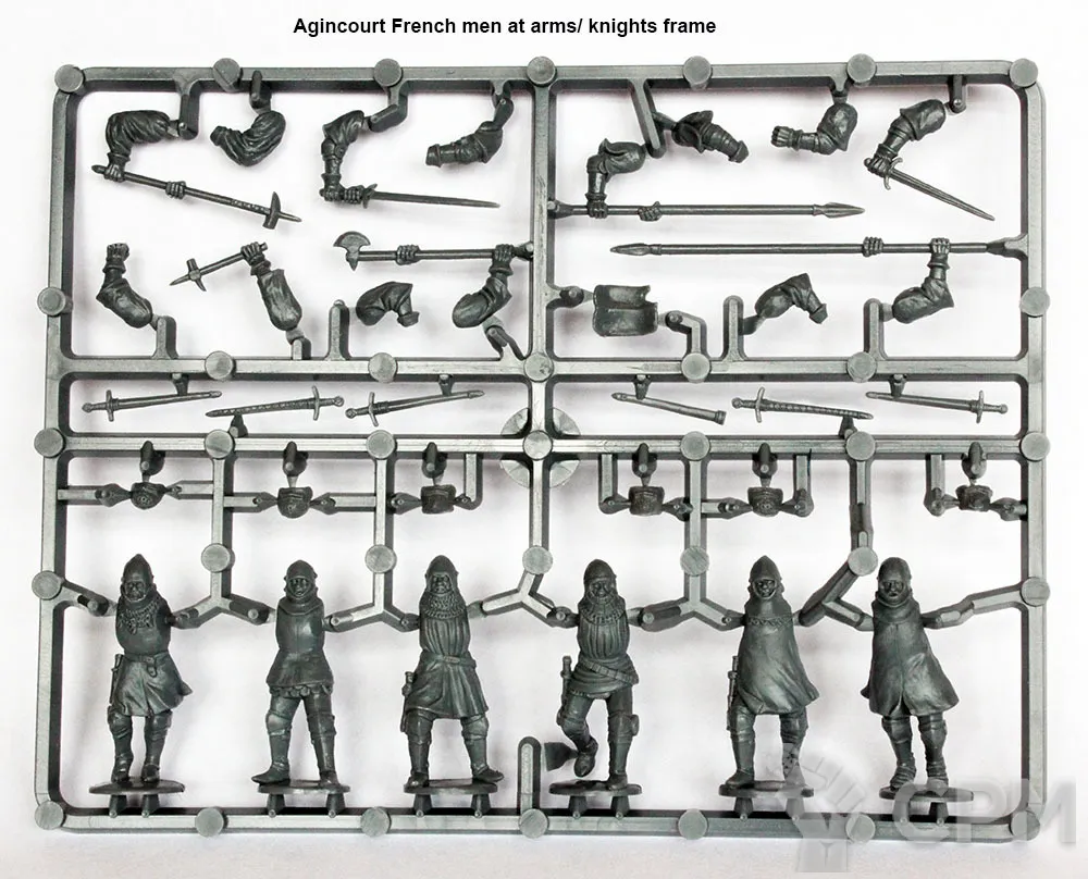 Эта коробка содержит 36 рыцарей / тяжёлых латников. 18 «английских» рыцарей и 18 «французских», однако все они могут использоваться для одной и той же стороны или для любой западноевропейской нации. Они вооружены укороченными копьями, древковым оружием и мечами.