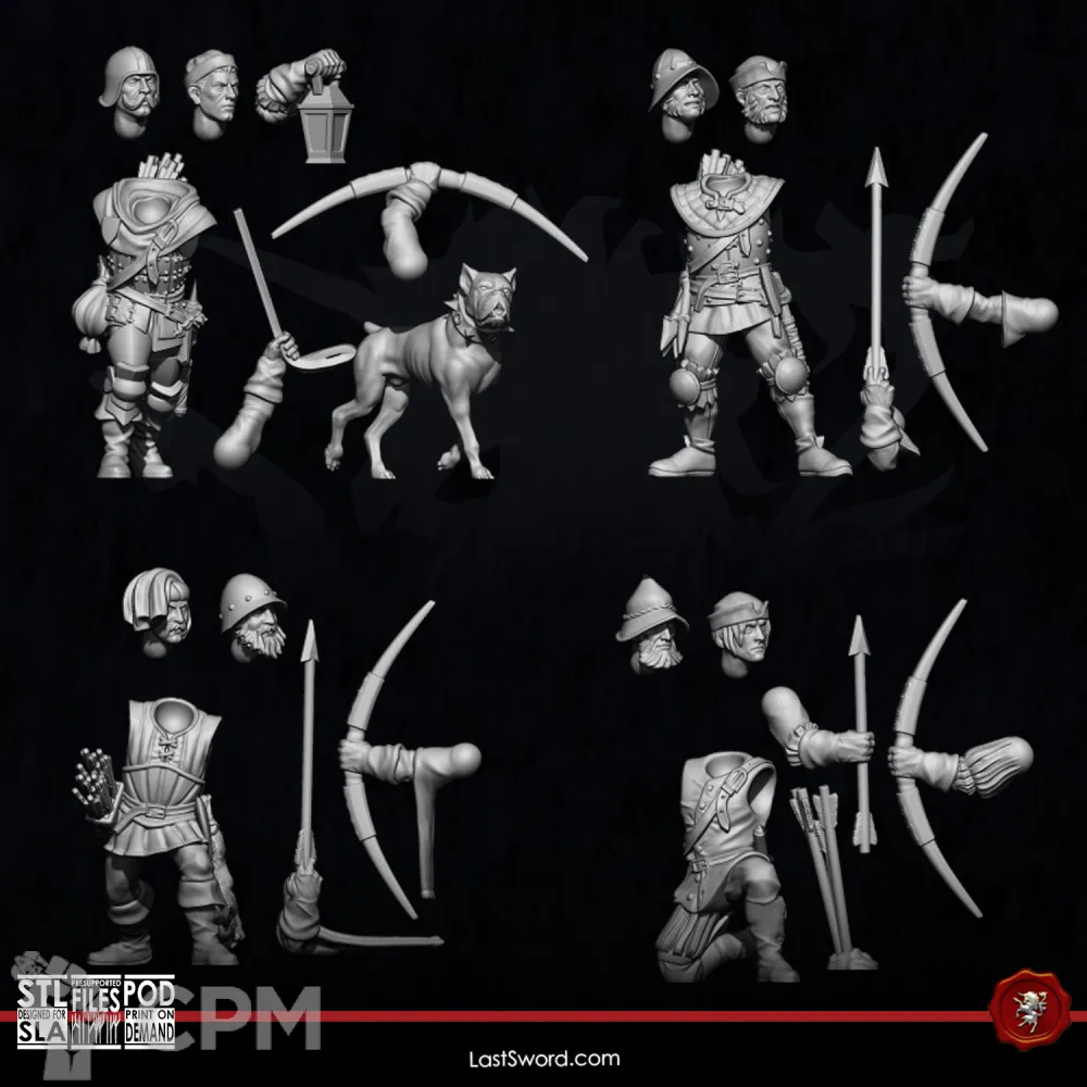 Городская стража - в полученном мной комплекте на 6 тушек только 5 левых рук. Правых рук - с запасом, хватает на всех, но я в заказе просил напечатать ещё две пары рук с луком, они в наборе есть, и если их не считать, тогда вовсе в наборе только три левых руки на 6 тушек. Головы на месте. Кинжалов и колчанов которые есть на фото - ни одного, хотя в описании товара написано, что комплектация как на фото. Беда с масштабом, у меня есть другие мини из этой же серии от Vae Victis от этого же продавца - они больше, а эти мелкие. Пластик хороший.
