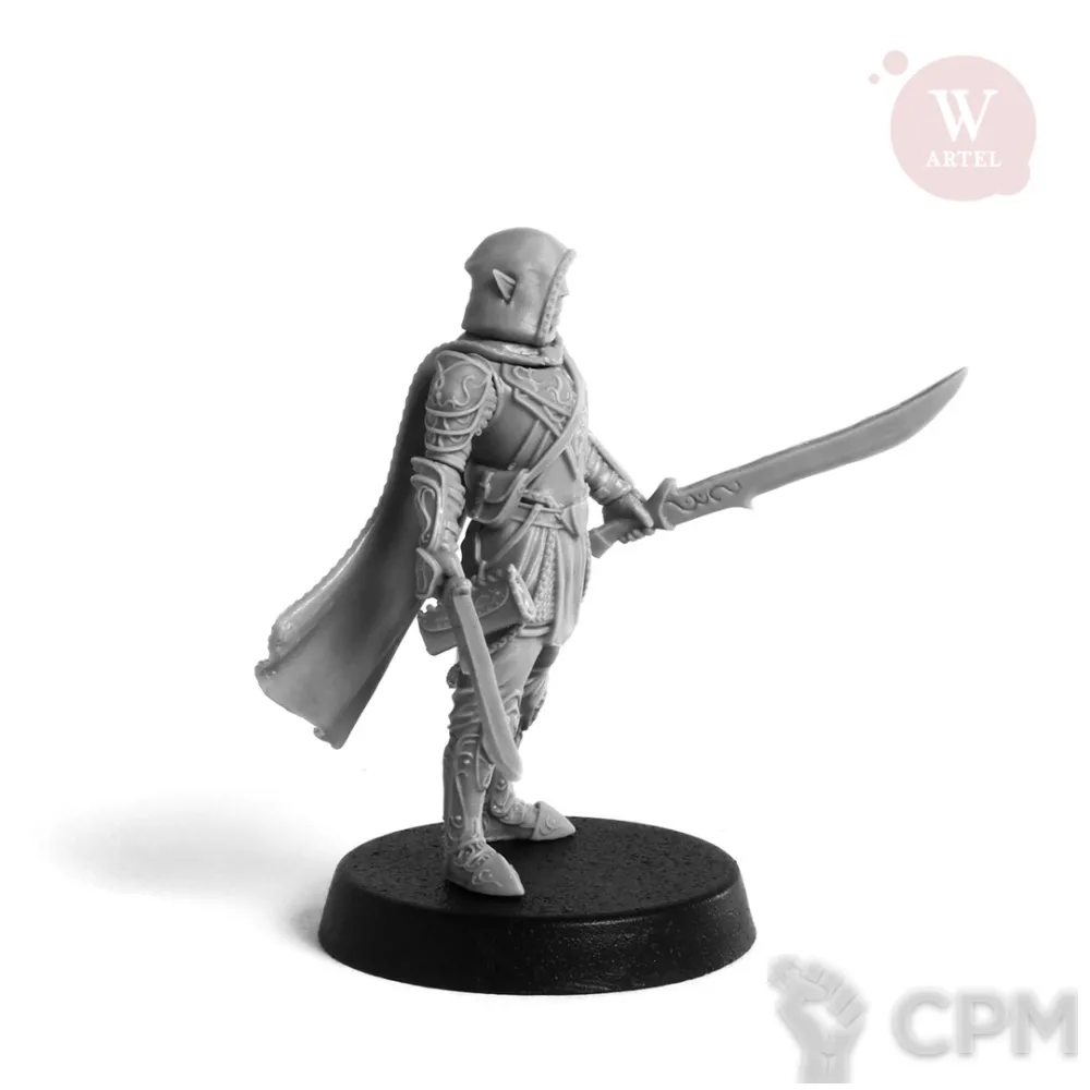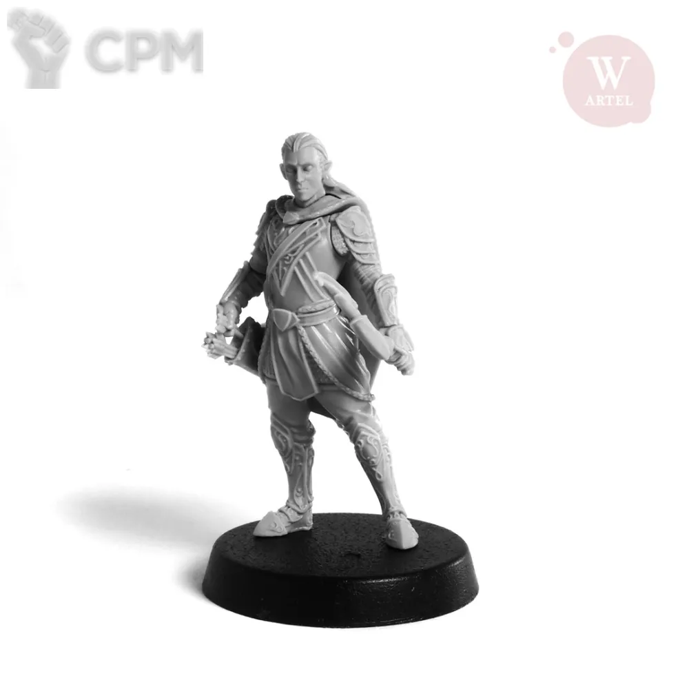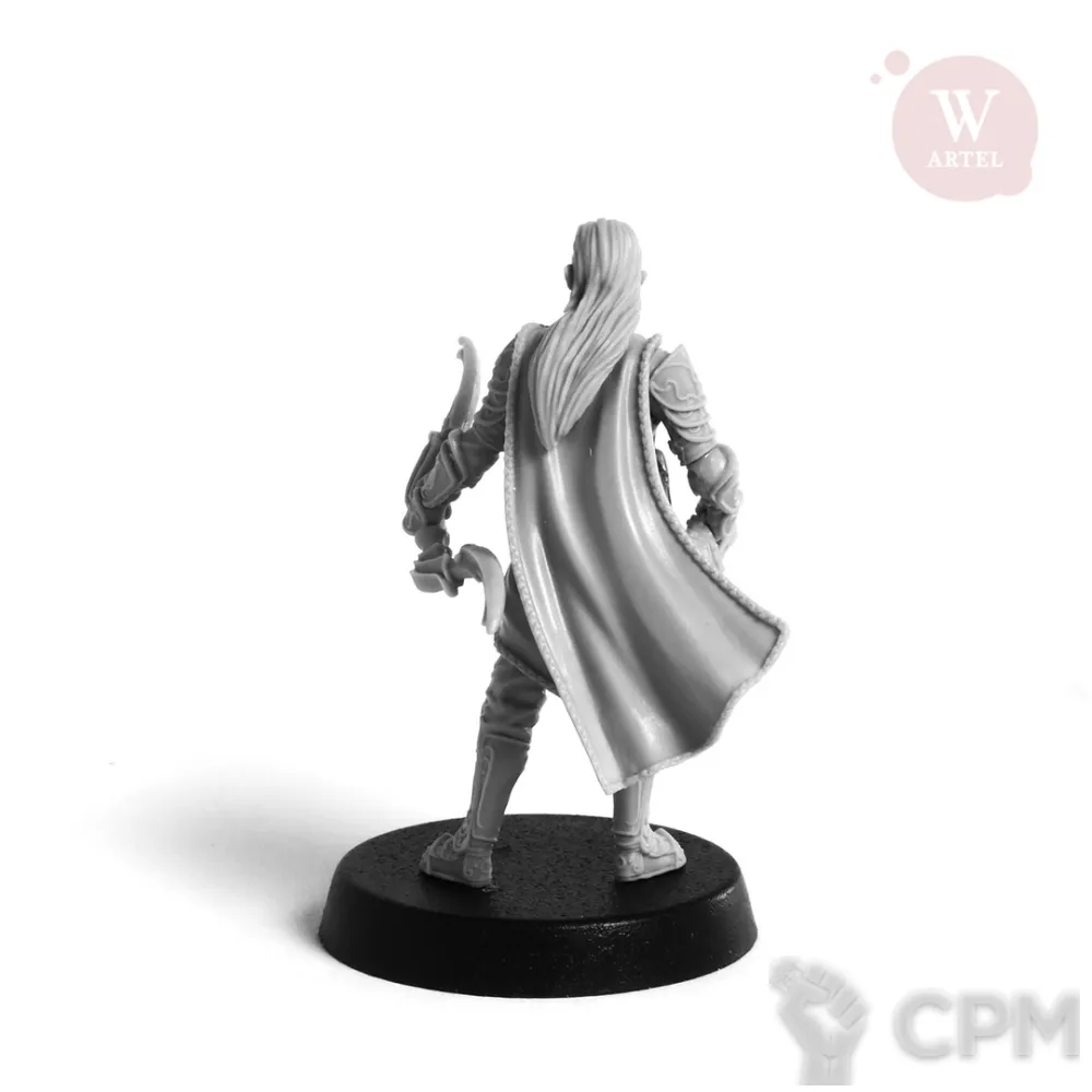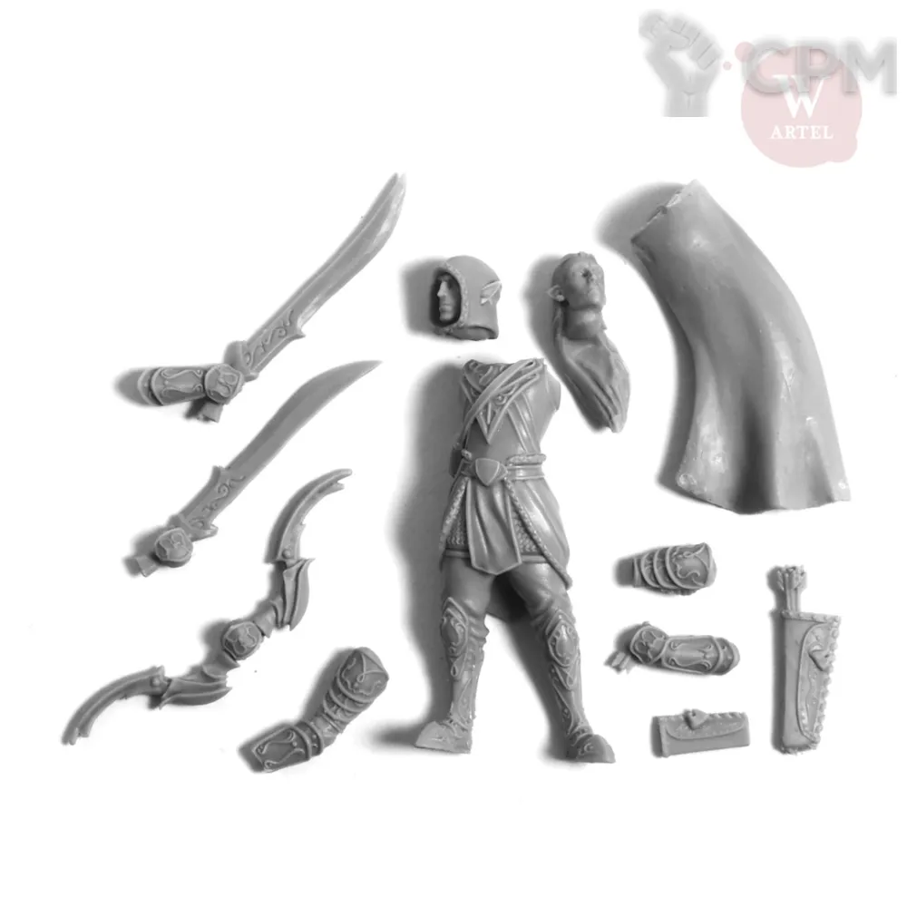 В комплект входят 12 деталей, в том числе опции головы, варианты вооружения лук/парные мечи; подставка 25мм