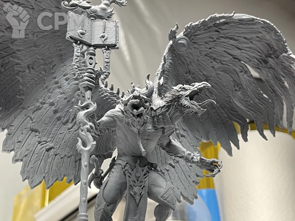 Неплохая детализация, но очень хрупкий материал. Тонкие детали (такие как некоторые шипы/части шипов булавы Лоргара, пальцы или лента на груди) просто не доехали. Понятно, что это печать, а не лицензионный продукт, но исходя из знакомства с существующими аналогами (тут на СРМ) - за ту же цену смола может быть более гибкой и прочной. И ближе к пластику даже внешне.