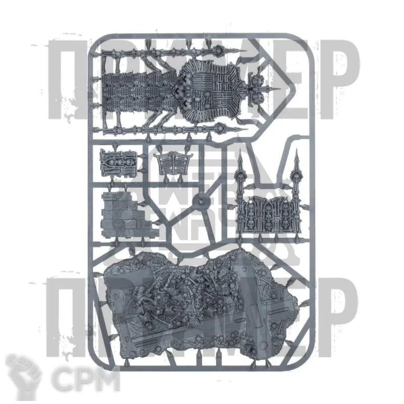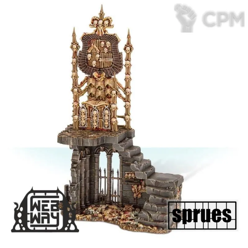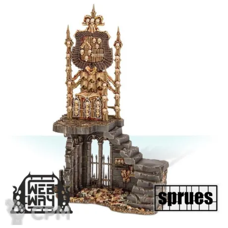 Склепный трон, созданный из костей тех, кто был убит безумной магией отвратителя, источает безумие и некротическую энергию. Они являются средоточиями власти верховных регентов и королей-упырей, сверкающими маяками для мордантов и строениями, наводящими ужас на врагов Дворов Пожирателей плоти.