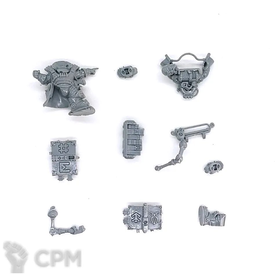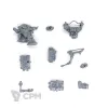 Собакен пришел. На качество литья не буду жаловаться - смола и крупные детали дружат никак. Но недостающие детали - это нехорошо. Точно нет запалов на втором инферно кэнон, нет второй крышки плеча над сервитором, нет одного места крепления силового кабеля к орудию и вызывает подозрения одиночная деталь чьё назначение я пока не нашел.