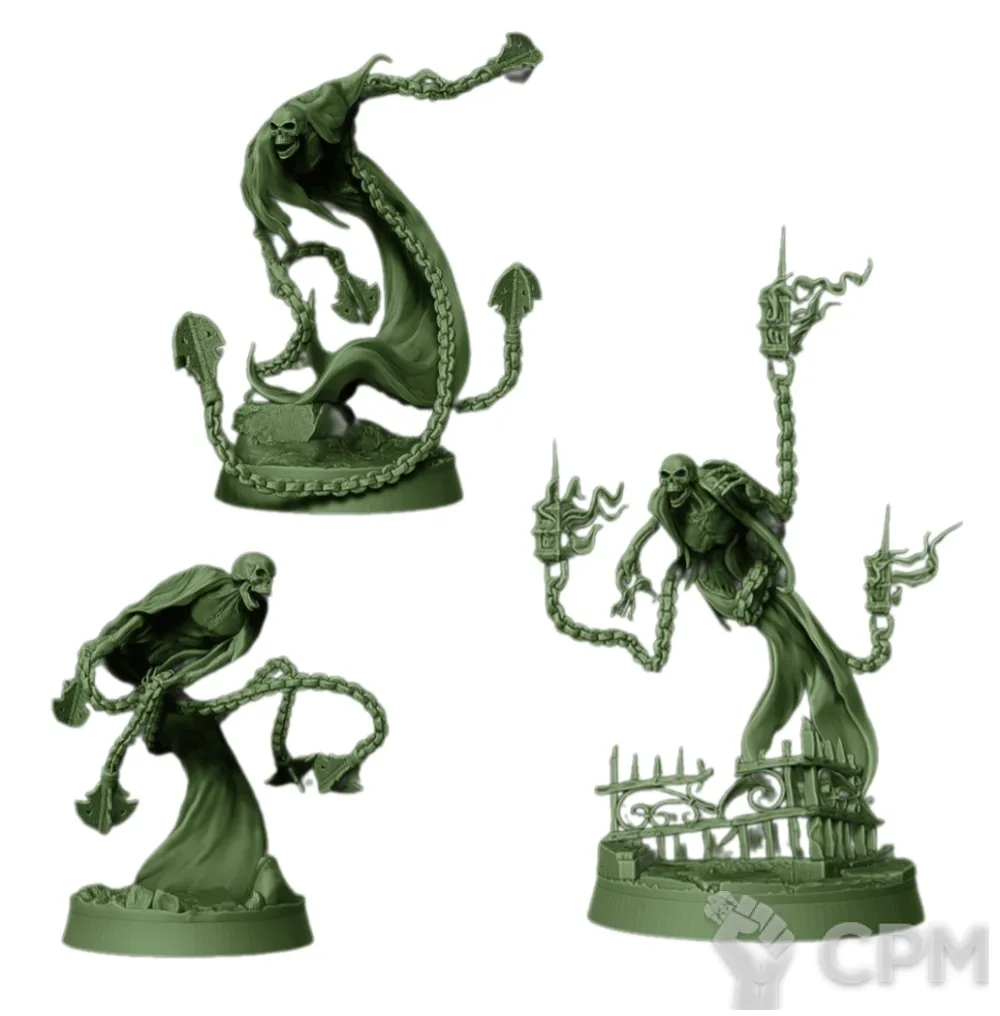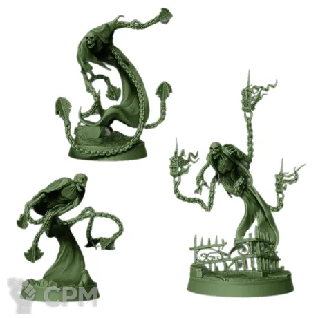 Альтернативный скульпт Nighthaunt Crawlocke The Jailor с двумя подставками диаметром 32 мм и одной диаметром 40 мм.