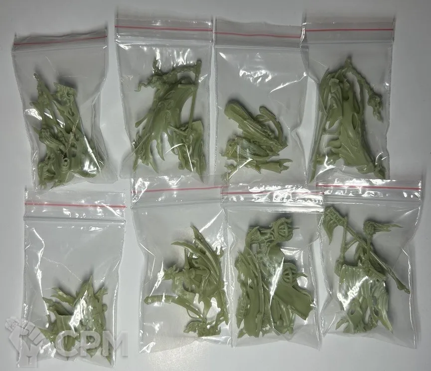 Качество литья весьма уважаемое, материал непривычного зеленоватого цвета но для работы комфортный, классические смещения присутствуют но совсем небольшие, поддержки на литье уже счищены да и облоя почти нет. Плюс продавец подкинул пару мелочей для оформления баз что приятно.