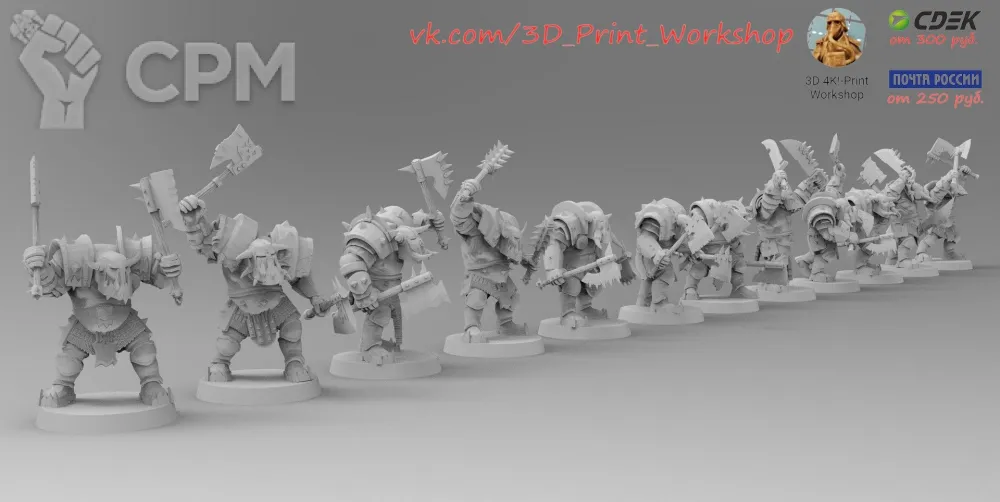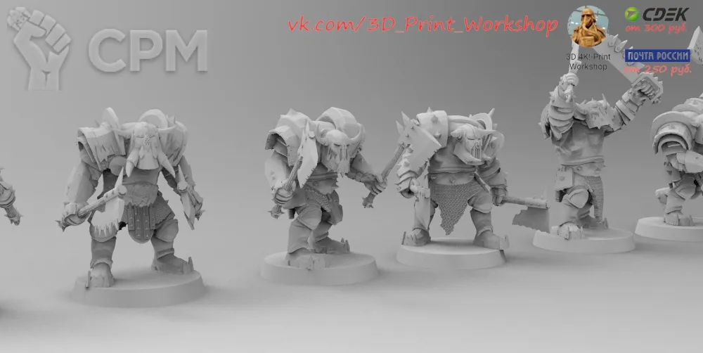 Ребята, очень качественно команда пасюков напечатана, почищена. По очистке от поддержек минимальные работы. Детализация выше всяческих похвал. Из пожеланий на перспективу - не экономьте на зип-пакетиках, раскладывайте миньки в количестве 3-4 максимум на пакетик. Так, как показывает практика, меньше будет досадного микро-лома при транспортировке. Вообще, очень доволен заказом, благодарю мастерскую, буду заказывать ещё!