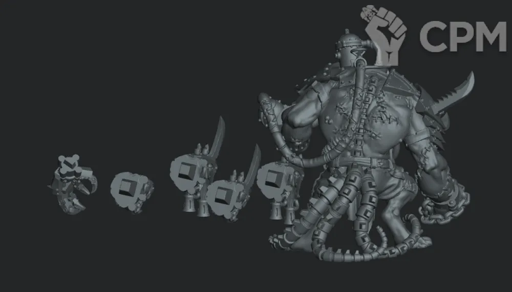 Scaven Tech-Rats Rat Ogre. На выбор голова и тело, рука с щупальцами/без