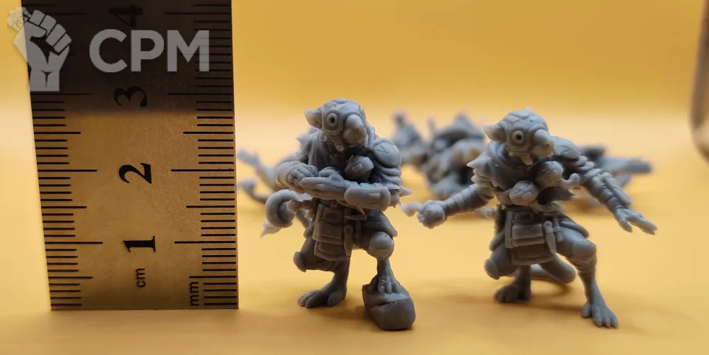 Миниатюры напечатаны на 12k 3д принтере с толщиной слоя в 0.02 мм смолой elegoo. В комплекте детали для сборки 6 миниатюр без баз. Комплект как представлено на фото, возможна печать дополнительных миниатюр или битсов.